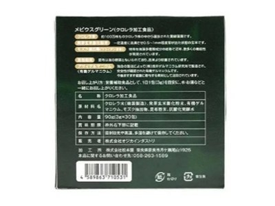 | 原材料 | クロレラ末(韓国製造)、発芽玄米膨化粉末、有機ゲルマニウム(アサイゲルマニウム)、モズク抽出物、昆布粉末、サラダ用調味液(メビウスウォーター) 【クロレラブルガリス種】約100万株もの中から厳選されたクロレラ株。アミノ酸やビタミン・ミネラルが豊富で細胞膜が非常に薄いため、消化吸収率が高い。 【発芽玄米】ギャバを多く含む玄米を特殊製法にて粉末化したもの。穀類由来の栄養を補給。 【有機ゲルマニウム ※アサイゲルマニウム】血流の改善や免疫活性化、抗酸化作用などが報告されている成分。 【モズク抽出物】フコイダン含有の海藻由来多糖類で免疫サポートやデトックス効果が期待。 【昆布粉末】ミネラル豊富な海藻成分。 【サラダ用調味液 ※メビウスウォーター】3年以上の醸造発酵を繰り返して作られた調味液。素材本来の良さを引き出す。 |