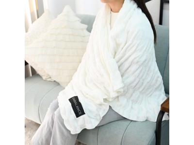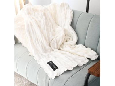 織物の産地として有名な和歌山の高野口で一枚一枚丹念に織られた逸品です。長年新幹線のシート作りに指定されている加工場での織り製造のため、他品に比べて糸抜けしにくくなっています。シュリンク織による凹凸が空気をたっぷり含み、ふんわり軽くてあたたか。綿とポリエステルの混紡パイル糸に伸縮性のある地糸を使用し、やさしい肌ざわりとフィット感を両立しています。洗濯機で丸洗いできる扱いやすさ。大切な人へのプレゼントにも最適です。 【お取扱い上のご注意】