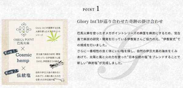 デトックス効果の高い麻炭(巴馬(バーマ)産の火麻茎使用)を、伊豆大島の清らかな海水を太陽と風と火の力を使った塩にブレンドしたまったく新しいお塩です。