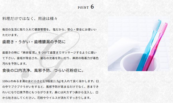 麻炭と伝統塩の匠の技、奇跡の掛け合わせでできた塩です。