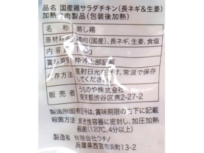 | 原材料 | 鶏肉(国内産:宮崎、兵庫、鳥取、島根、徳島等)、食塩(国内産)、生姜(国内産)、長ネギ(国内産)、(原材料の一部に鶏肉を含む) |