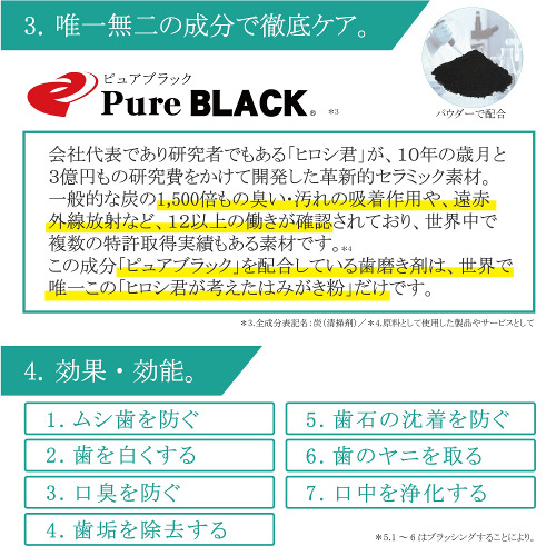 自社開発素材「ピュアブラック」を配合した、誕生以来15年以上にわたりご愛顧いただいているロングセラー商品です。