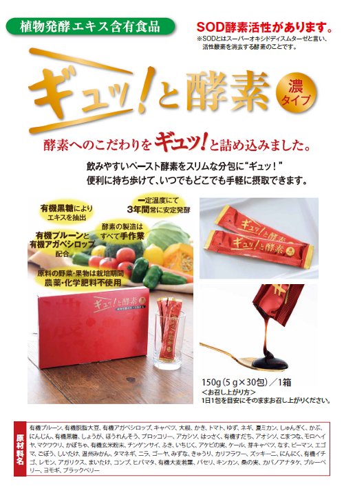 | 名称 | 植物発酵エキス含有食品「ギュッ!と酵素」 |